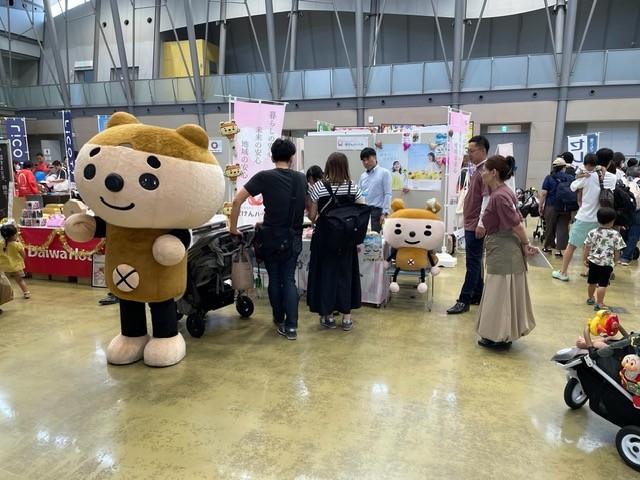スタッフとひまわり生命 公式キャラクター「ぽんぽん」と記念撮影!!